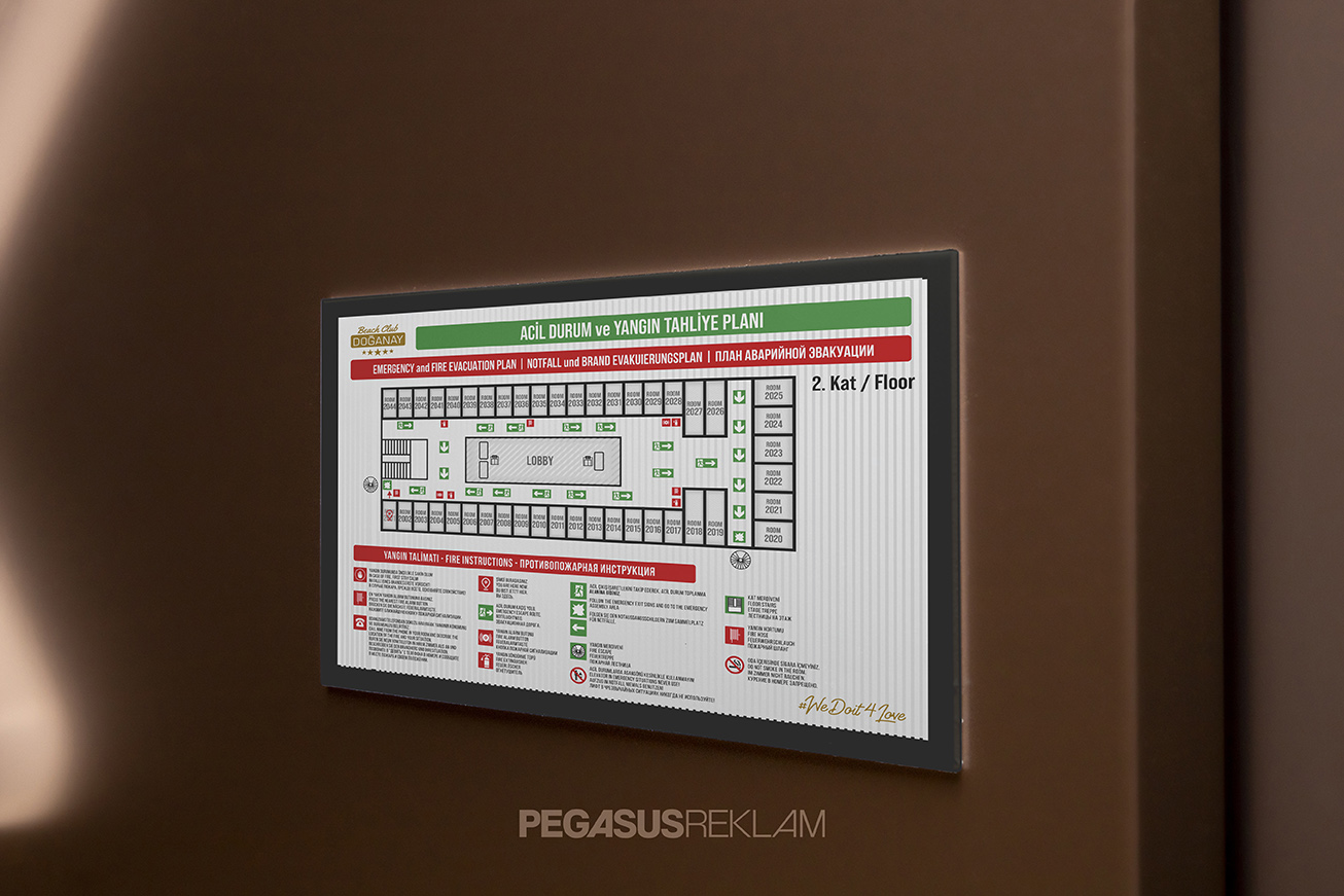 Pegasus Reklam olarak, Alanya’daki oteller ve turistik tesisler için profesyonel grafik tasarım, yüksek çözünürlüklü baskı ve montaj hizmetleri sunarak tahliye planlarını hem kusursuz hem de kurumsal bir standarda uygun şekilde hazırlıyoruz.