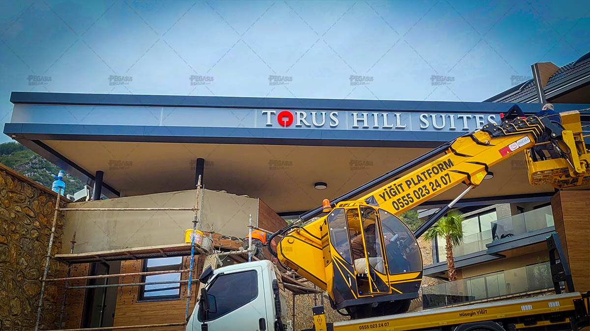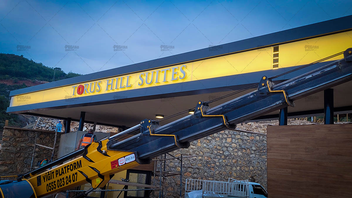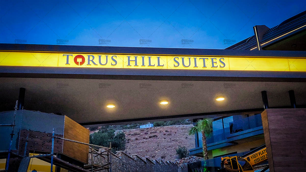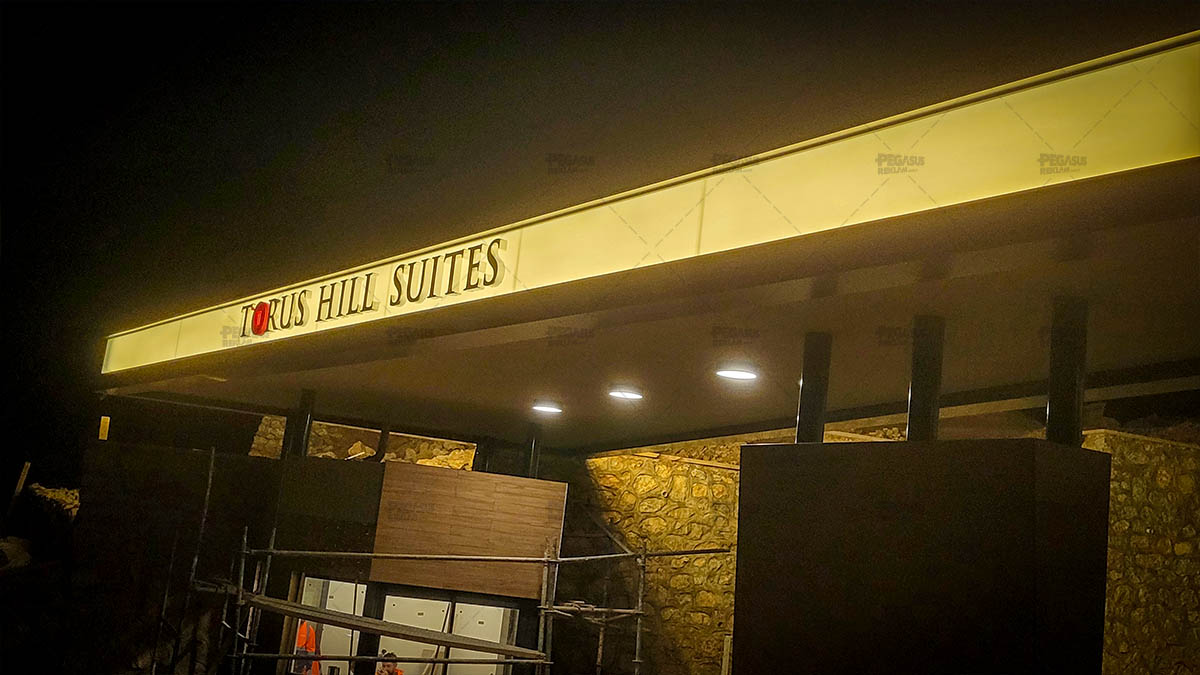 Torus Hill Suites – Işıklı Krom Kutu Harf Cephe Tabelası