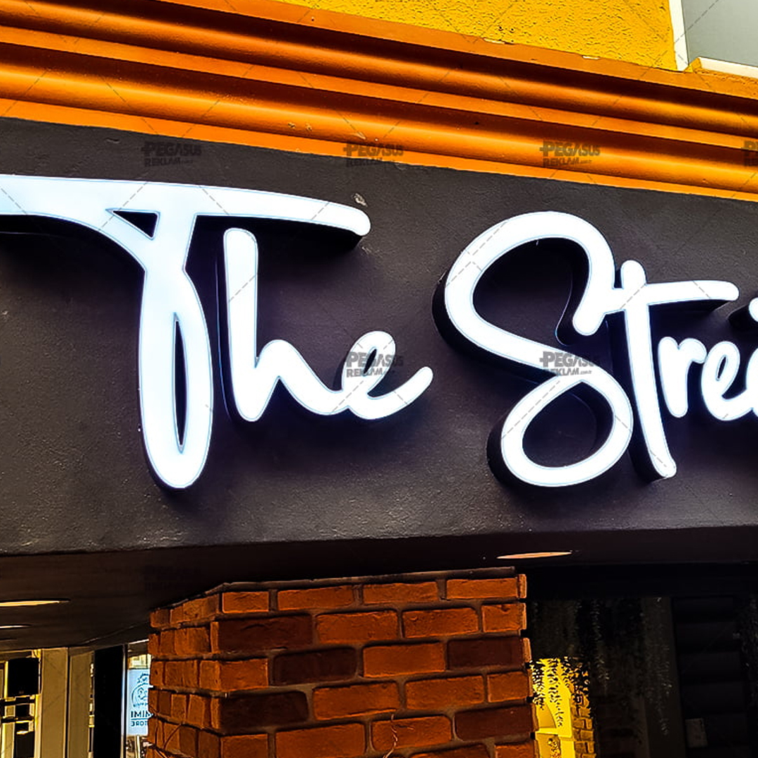 Işığın yayılmasını kontrol etmek için yan bantların koyu renkte tercih edilmesi, özellikle gece karanlığında harflerin havada duruyormuş gibi bir görünüm oluşturur. Bu özellik, hem iç mekanlarda hem de dış mekanlarda dikkat çekici bir atmosfer yaratır.