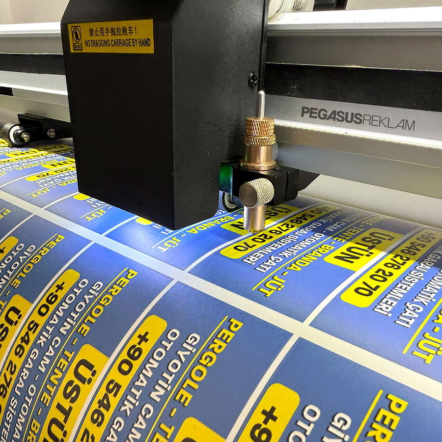 Üretim aşamasında, baskı çıkartma işlemi için özel olarak tasarlanmış makinalar kullanılır. Bu makinalar, kesim ve baskı işlemlerini yüksek hassasiyetle gerçekleştirerek, etiketin her bir detayının mükemmel bir biçimde yüzeye uygulanmasını sağlar.