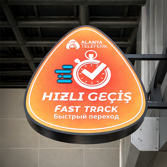 Özellikle hızlı geçiş (Fast Track), danışma, giriş–çıkış ve yön bulma noktalarında en etkili tabela türlerinden biridir.