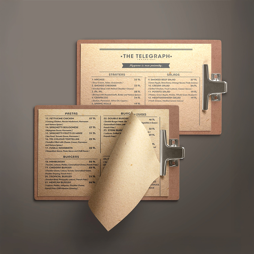 Restoranın logosunun ve sunum lezzetlerinin doğu şekilde tasarımda yer aldığı menüler ile istenilen sonuçların elde edilmesi mümkün olur. Restaurant menüleri hazırlanırken;